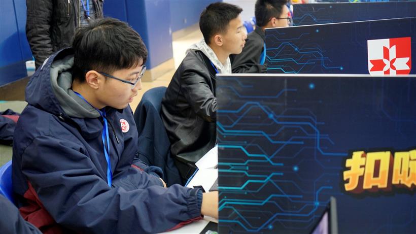 竞赛模式采用国际领先的扣哒世界算法竞技场模式,初级竞技场淘汰赛后晋级的128名选手进入决赛高级竞技场,考核循环结构、嵌套分支结构、高级函数和算法迭代优化等知识,经过第一轮成绩,内场(苏州中学园区校)和外场(“数字公民”课程基地联盟校)共产生32强。然后采用世界杯决赛的模式,经过抽签产生上下半场4个小组,32强选手通过系统抽签决定两两pk的对手,选手每15分钟优化一次代码,依次产生16强、8强、4强、冠亚季军。