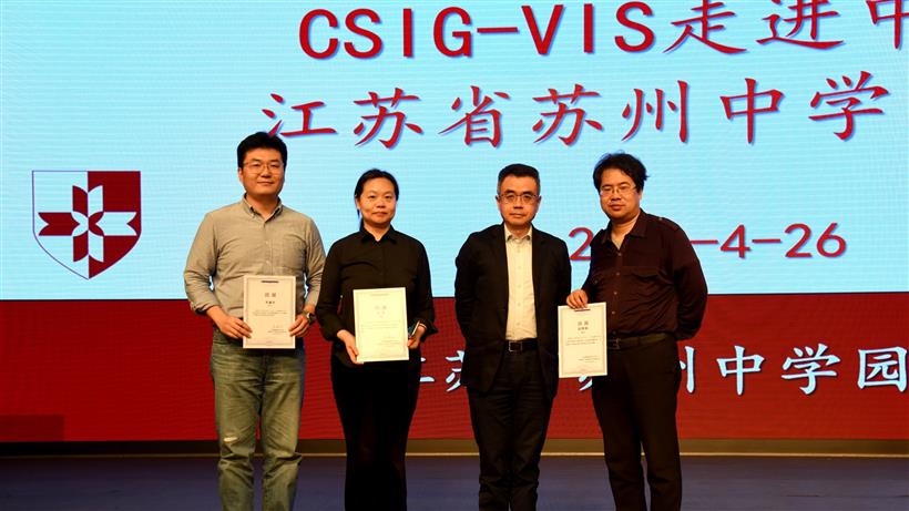 2021年4月26日,CSIG-VIS 走进中小学活动在苏州中学园区校成功举办。本次活动由中国图象图形学学会主办,可视化与可视分析专委会(CSIG-VIS)与江苏省苏州中学园区校联合承办。本次科普讲座活动请到北京大学信息科学与技术学院研究员,博士生导师袁晓如教授和上海大学上海美术学院副教授、硕士生导师,数码艺术系常务副系主任李谦升博士进行专家讲座。园区校初一初二年级全体学生及学校领导、老师参加了此次活动。